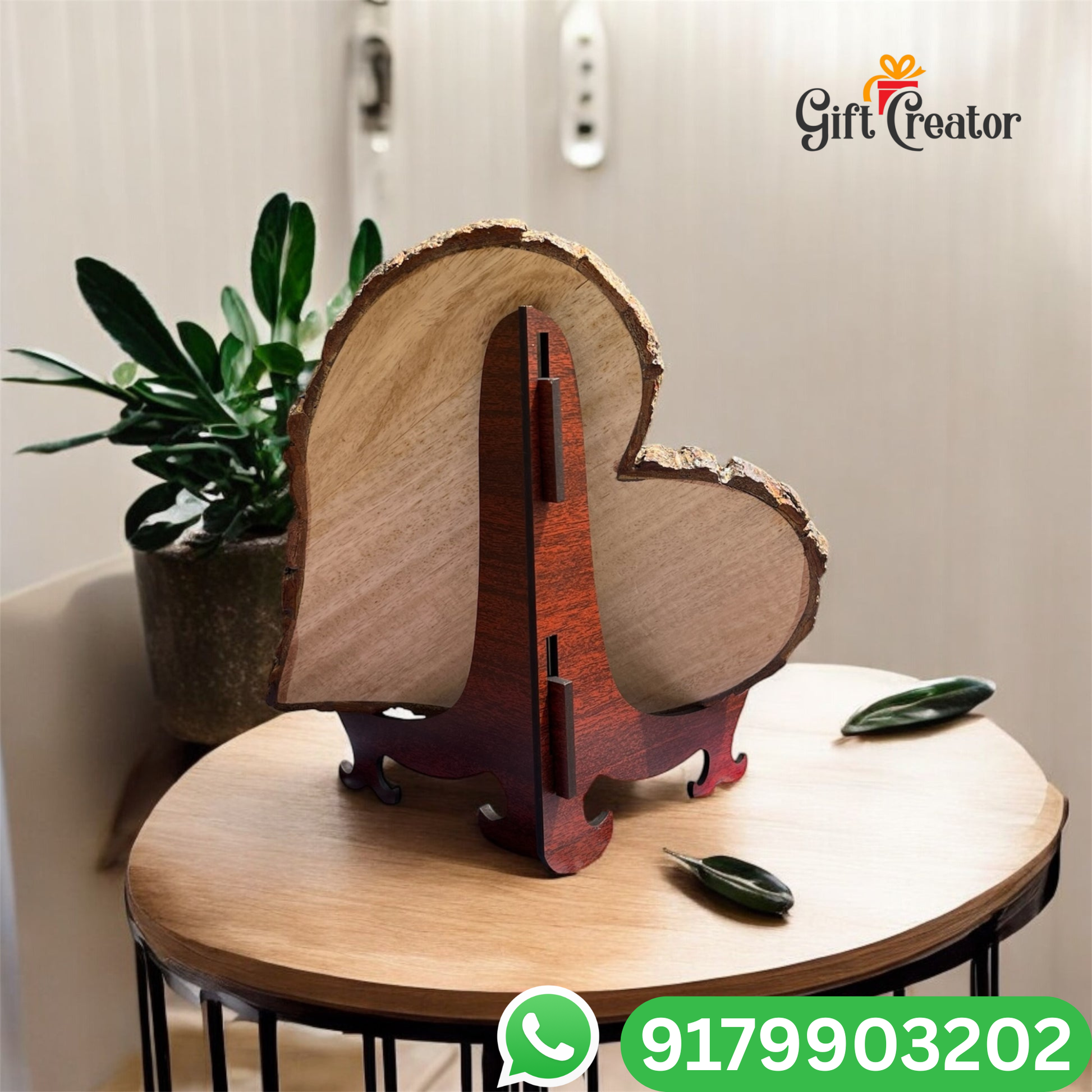 Personalised Photo Text - Natural Wood Heart Engraved Frame